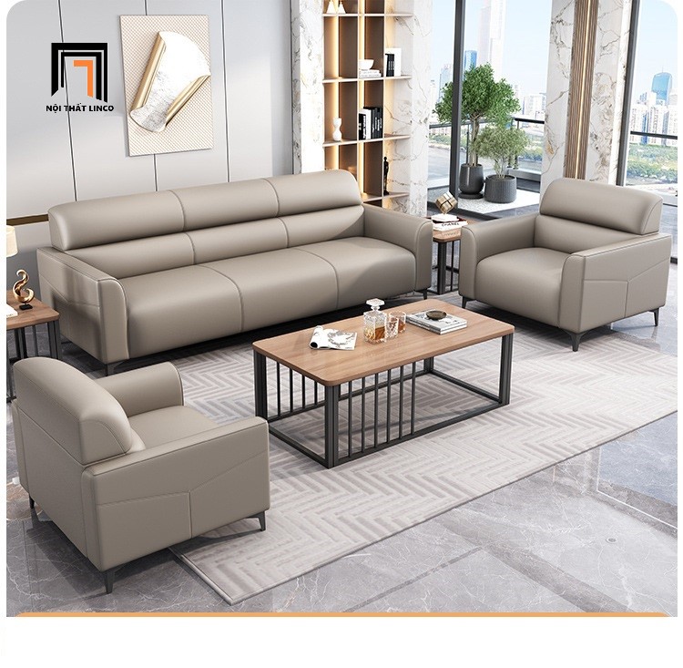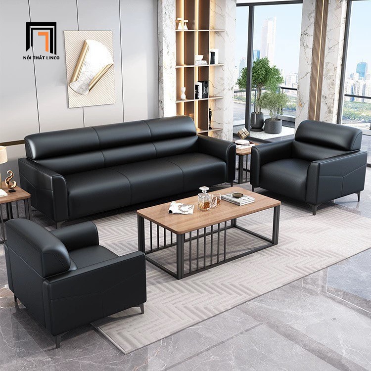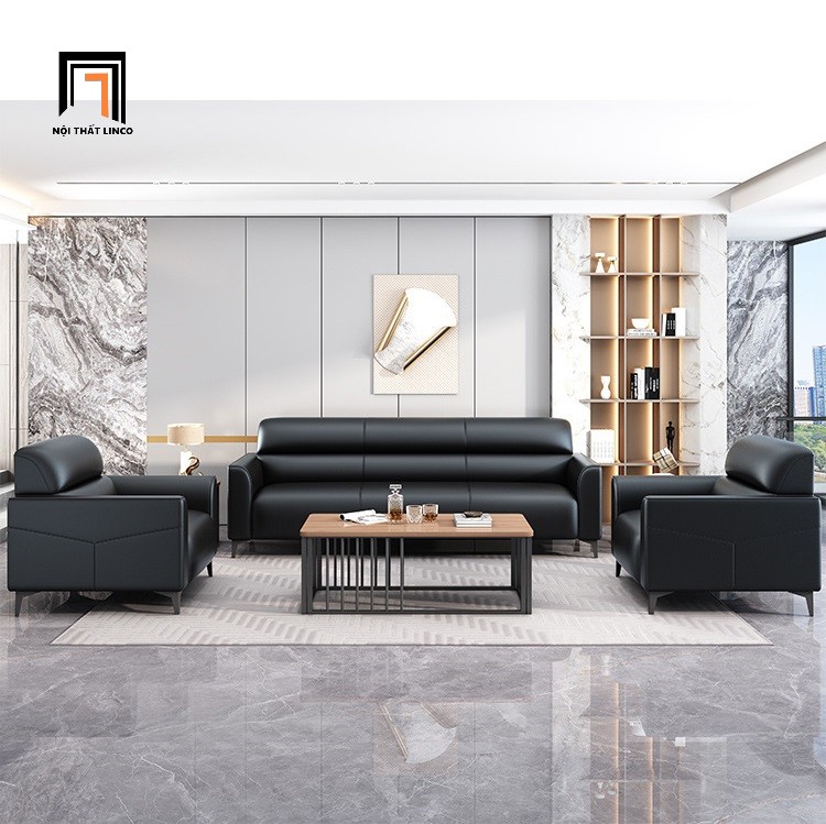 B3 Bộ ghế sofa nệm văn phòng làm việc KT163 Trawen da Pu đen