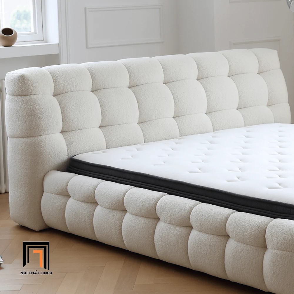 C1 Giường ngủ chia múi bọc vải lông cừu GN36 Addie màu trắng kem