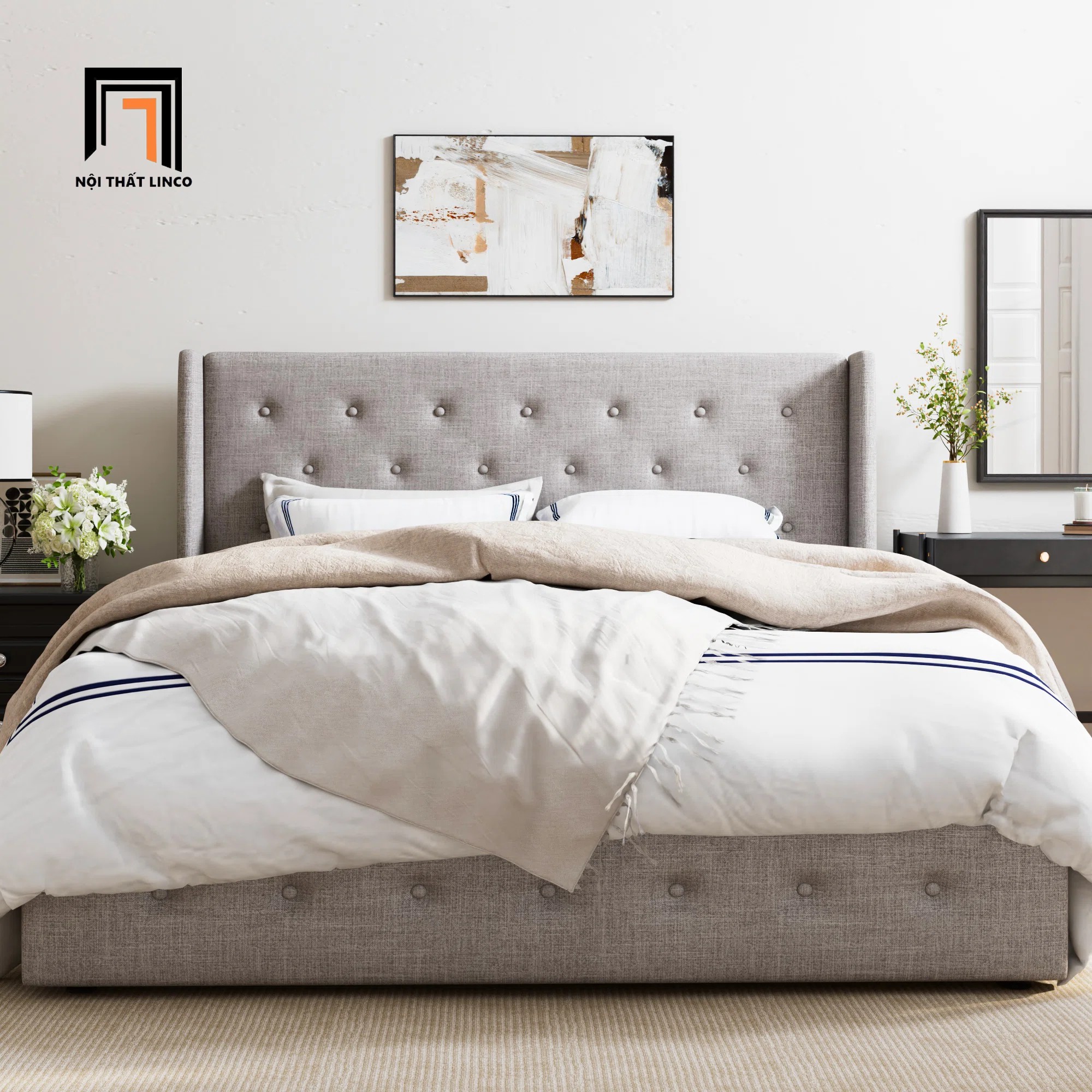 D2 Giường ngủ giật nút đẹp GN107 Standie màu xám vải nỉ bố