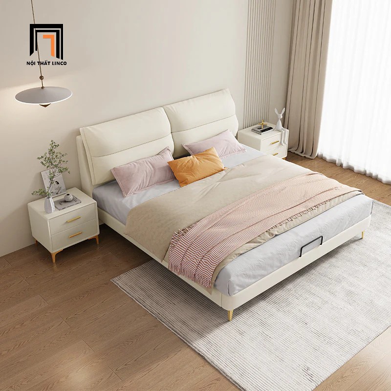 F1 Giường ngủ bọc nỉ màu be kem GN83 Pracotta 1m6 x 2m giá rẻ