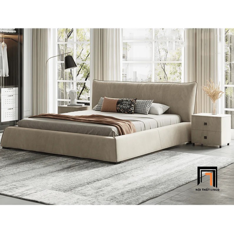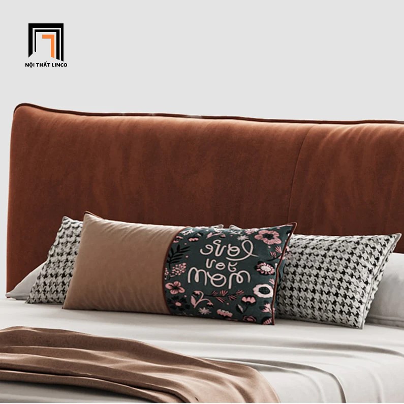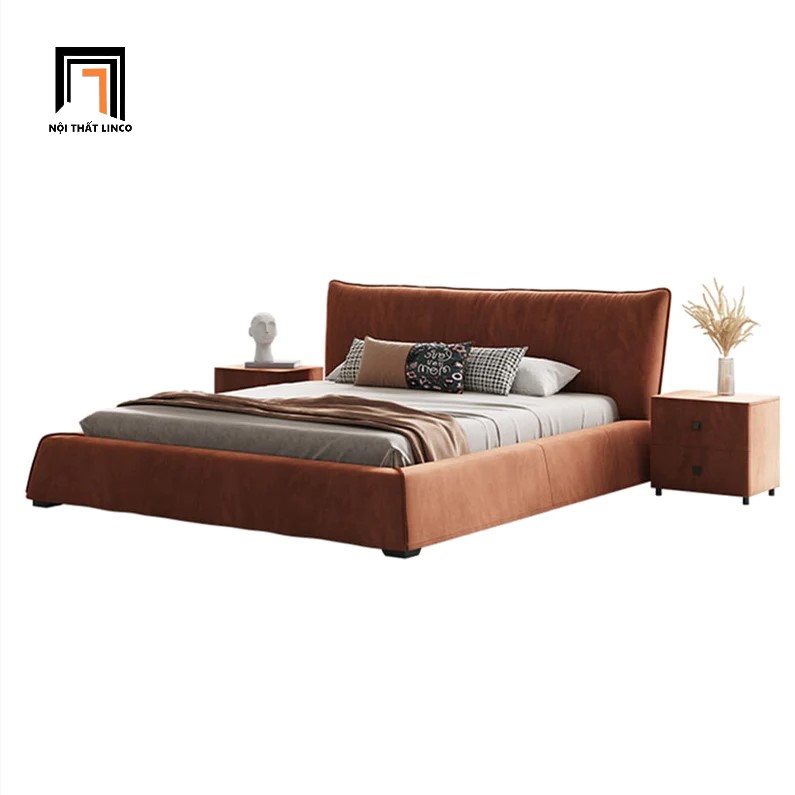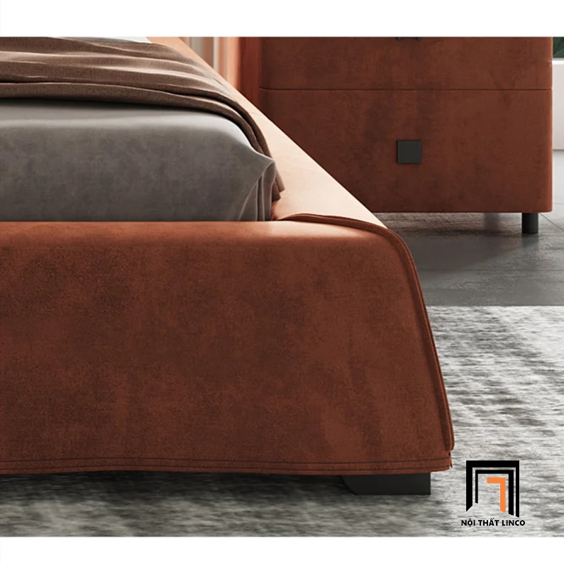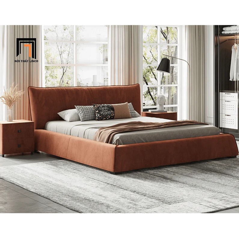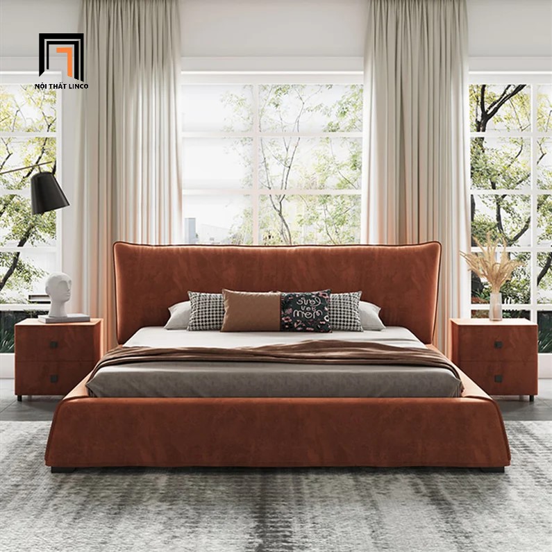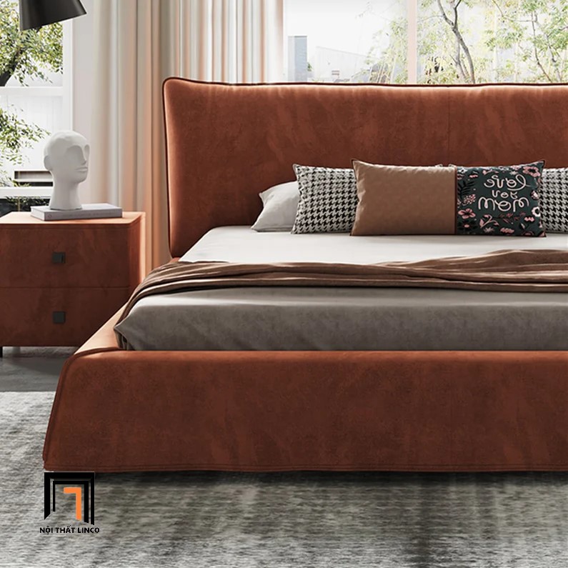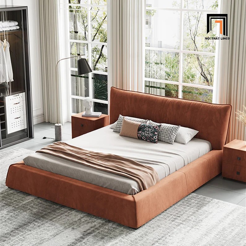 F2 Giường ngủ bọc da cao cấp GN57 Elsie màu cam đất 1m6 x 2m