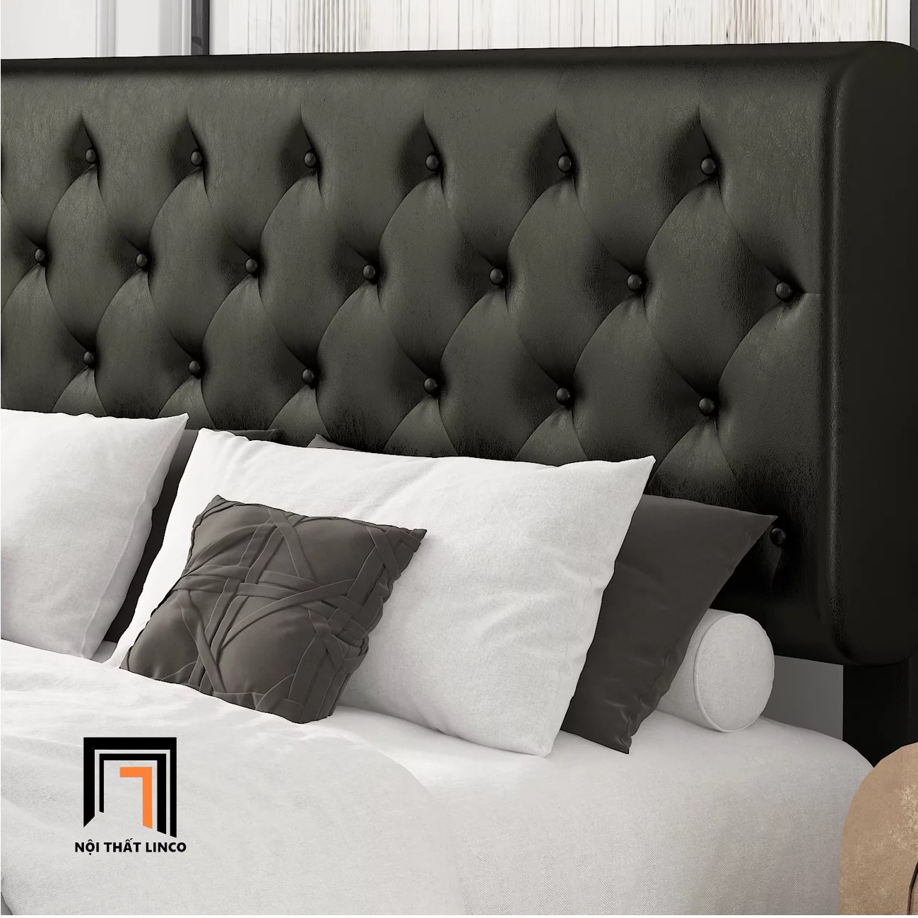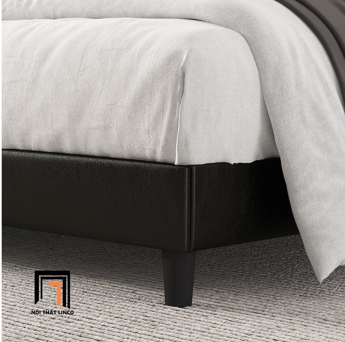 Giường ngủ bọc da giả GN13 Amolife 1m6 x 2m màu đen sang trọng