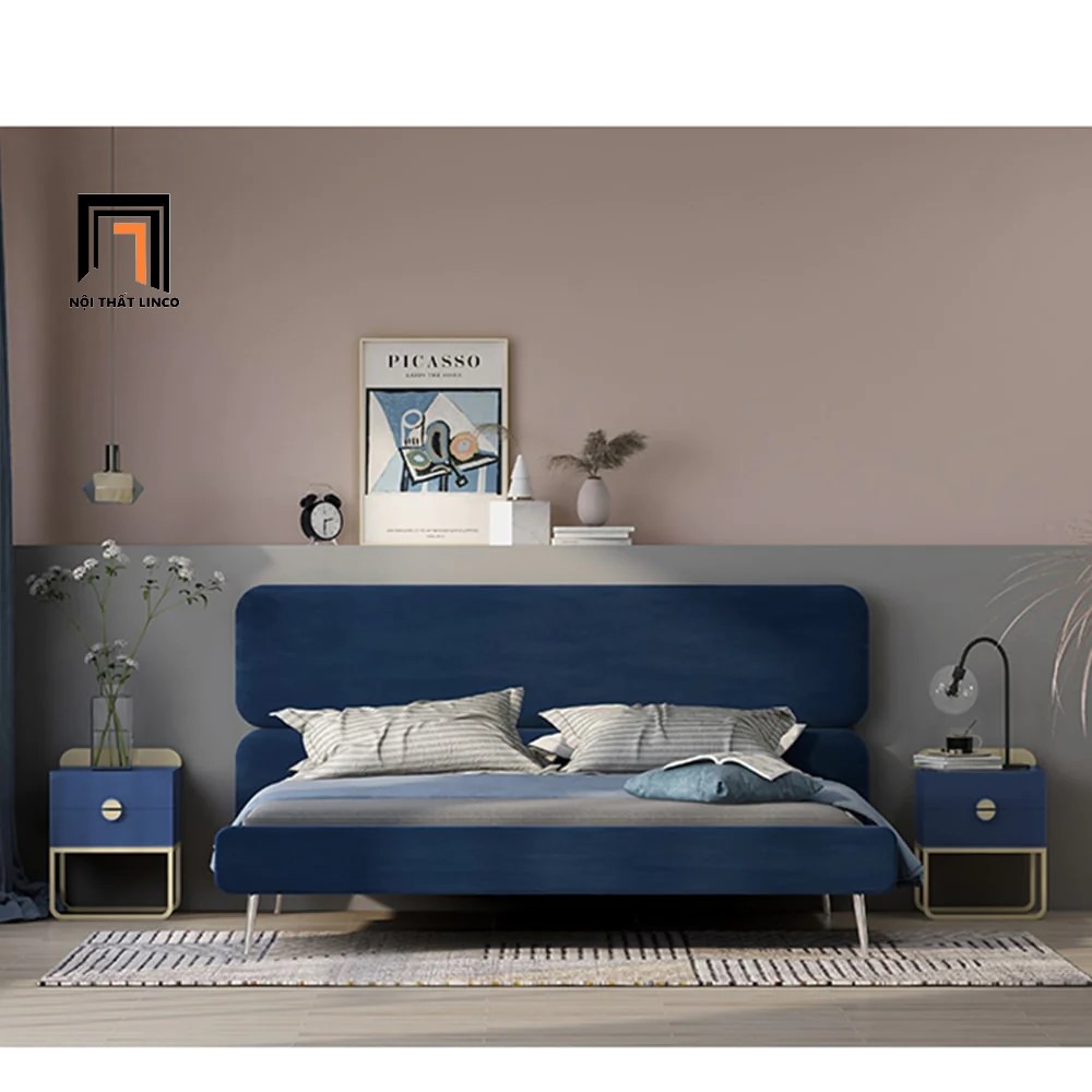 I2 Giường ngủ bọc vải màu đen GN46 Daryl 1m6 x 2m trẻ trung