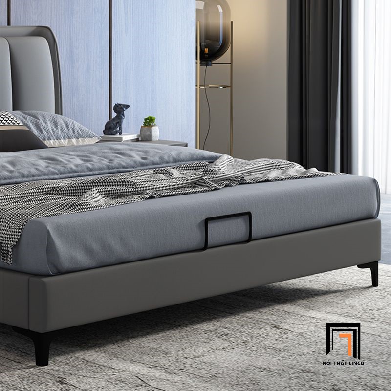 Giường ngủ bọc da giả màu xám GN80 Lisaili kiểu dáng hiện đại